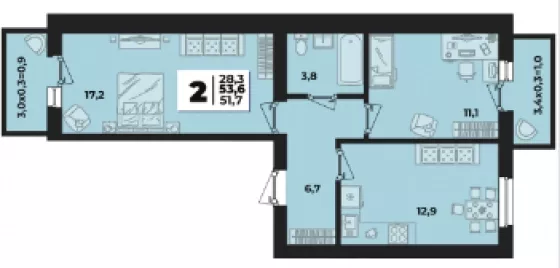 Продается 2-х комн. новостройка, 53.6 кв.м., 4/5 эт