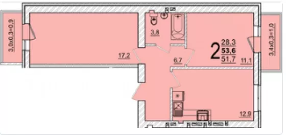 Продается 2-х комн. новостройка, 53.6 кв.м., 3/5 эт