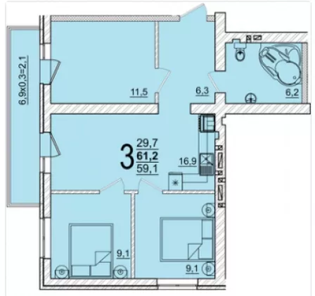Продается 3-х комн. новостройка, 61.2 кв.м., 4/5 эт