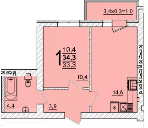 Продаётся просторная 1-комнатная квартира площадью 34,3 кв.м