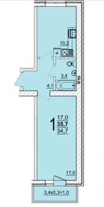 Продается однокомнатная новостройка, 35.7 кв.м., 4/5 эт