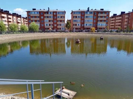 В жилом комплексе своя особая внутренняя среда, семейный сквер, уютные зеленые дворы со скамейками, игровые и спортивные площадки, озеро с благоустроенной набережной.