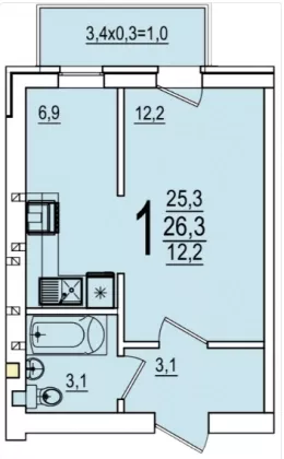 Продается однокомнатная новостройка, 26.3 кв.м., 1/5 эт