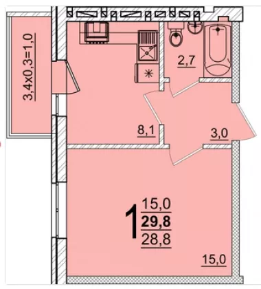 Продается однокомнатная новостройка, 29.8 кв.м., 4/5 эт