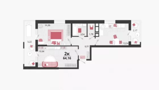 Продается 2-х комн. новостройка, 64.16 кв.м., 10/18 эт