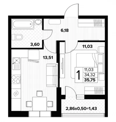Продается однокомнатная новостройка, 35.75 кв.м., 5/20 эт