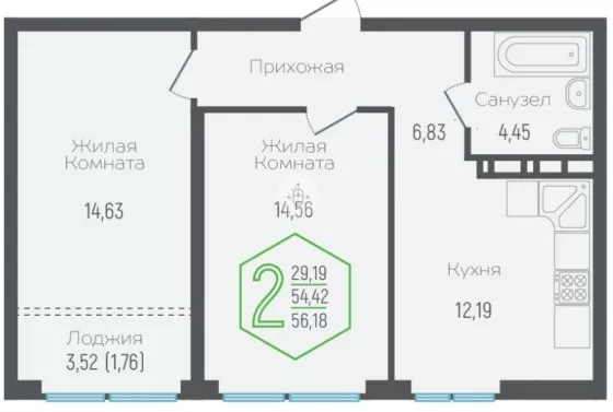 Продается 2-х комн. новостройка, 55.5 кв.м., 22/24 эт