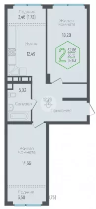 Продается 2-х комн. новостройка, 67.7 кв.м., 12/16 эт