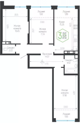 Продается 3-х комн. новостройка, 87.58 кв.м., 9/24 эт