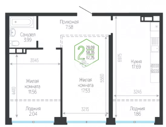 Продается однокомнатная новостройка, 62.25 кв.м., 14/16 эт