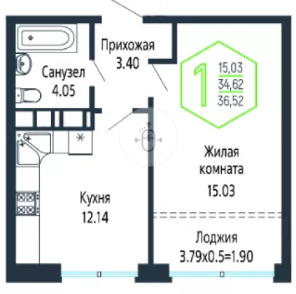 Продается однокомнатная новостройка, 36.86 кв.м., 19/24 эт