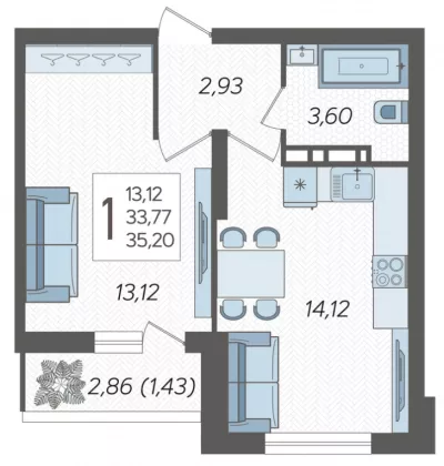 Продается однокомнатная новостройка, 35.2 кв.м., 15/16 эт