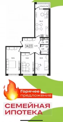 Продается 3-х комн. новостройка, 83.37 кв.м., 7/9 эт