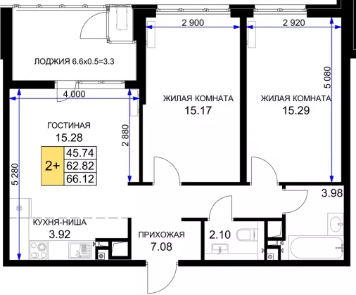 Продается 2-х комн. новостройка, 66.35 кв.м., 16/16 эт