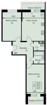 Площадь, кв.м.64