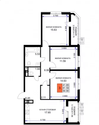 Продается 3-х комн. новостройка, 38.88 кв.м., 8/24 эт