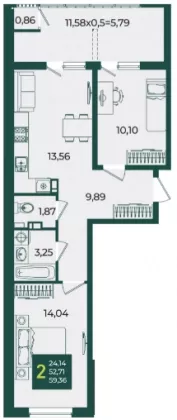 Продается 2-х комн. новостройка, 59.36 кв.м., 6/18 эт