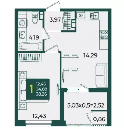 | Жилая площадь | 12.43 |