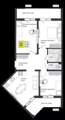 Продается 3-х комн. новостройка, 78.45 кв.м., 8/8 эт