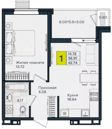 | Площадь, кв.м. | 42.74 |