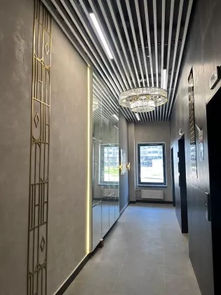 В квартире качественная современная предчистовая отделка, электроразводка по всей квартире, пол-сухая стяжка, просторные комнаты, кухня - гостинная, балкон застеклен в едином стиле, три бесшумных лифта.