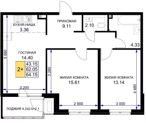 Продается 2-х комн. новостройка, 65 кв.м., 2/16 эт