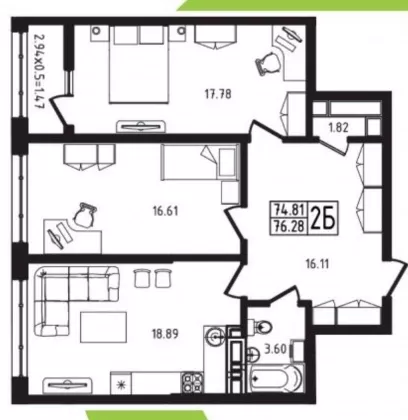 Продается 2-х комн. новостройка, 76.28 кв.м., 6/9 эт