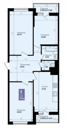 Трехкомнатная квартира в комплексе класса комфорт+ рядом с парком "Краснодар".