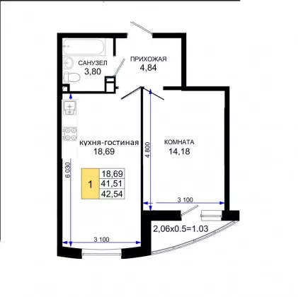 Продается однокомнатная новостройка, 44 кв.м., 8/18 эт