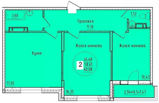 Площадь, кв.м.60.08