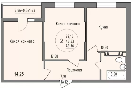 Продается 2-х комн. новостройка, 49.76 кв.м., 6/16 эт