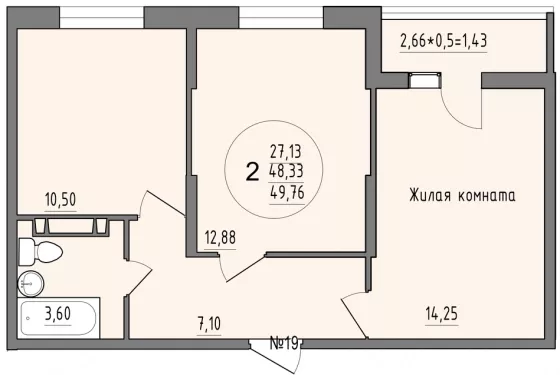 Продается 2-х комн. новостройка, 49.76 кв.м., 15/16 эт