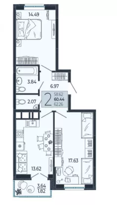 Продается 2-х комн. новостройка, 62.26 кв.м., 16/21 эт