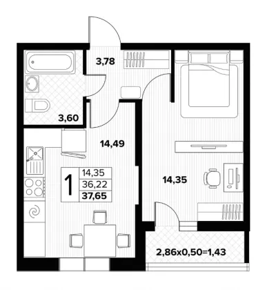 Продается однокомнатная новостройка, 37.65 кв.м., 10/20 эт