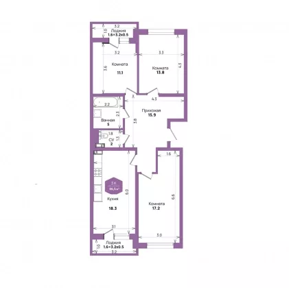 Продается 3-х комн. новостройка, 91 кв.м., 4/21 эт