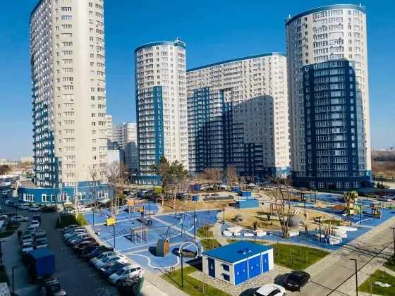 - ЖК расположен в Центральном окpугe г. Краснодар на берегу p.Kубaнь.