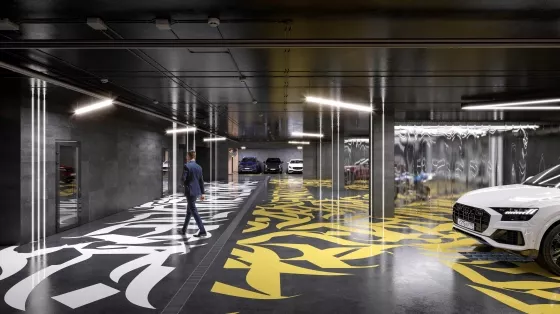 Двухуровневый подземный паркинг, в который Вы с лёгкостью можете спуститься на лифте!