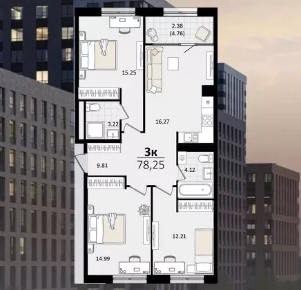 Продается 3-х комн. новостройка, 78.25 кв.м., 5/18 эт