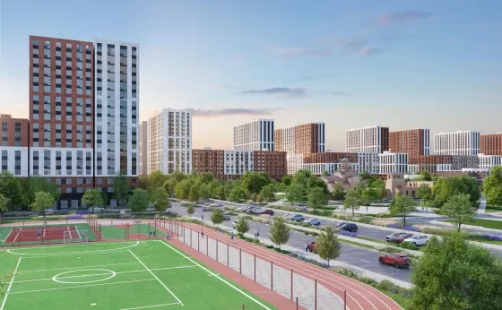 Сквер и пешеходный бульвар «Круг семьи» 1,5 км, 8 км велосипедных дорожек, теннисные корты, безопасные детские площадки, мангальные зоны.