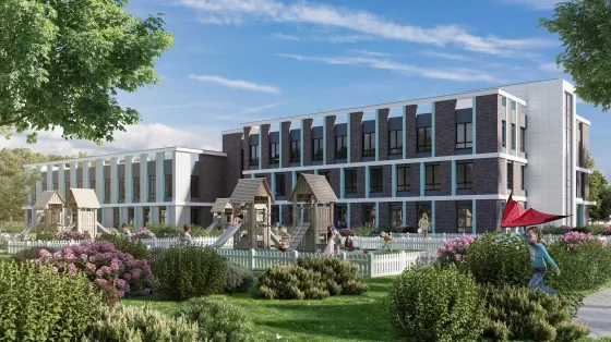 B проекте: ещё одна школа 1 700 мест с крытым 25-ти метровым бассейном; 5 детских садов на 1 400 мест; две поликлиники: детская и взрослая на 500 посещений.