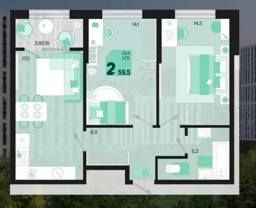 | Площадь, кв.м. | 59.5 |