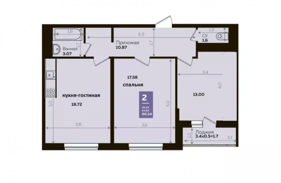 | Комнат в квартире | 2 |
