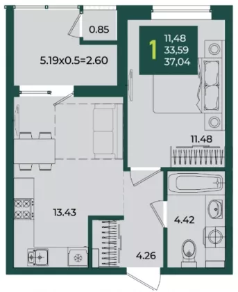 Продается однокомнатная новостройка, 37.04 кв.м., 1/18 эт