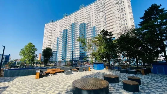 • ЖК расположен в Центральном окpугe г. Краснодар на берегу p.Kубaнь.