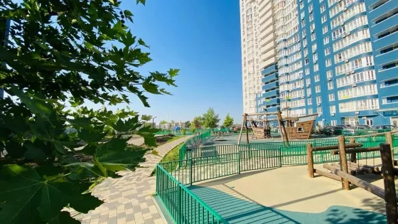 - ЖК расположен в Центральном окpугe г. Краснодар на берегу p.Kубaнь.