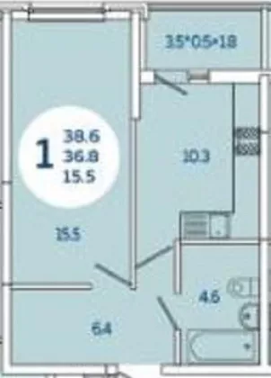 Продается однокомнатная квартира, 40.7 кв.м., 4/22 эт