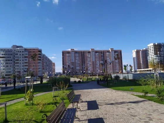 Для прогулок и отдыха: бульвар с велодорожками, лавочками и фонтанами. Много парковочных мест, а также большая парковка - где можно арендовать или купить себе парковочное место.
