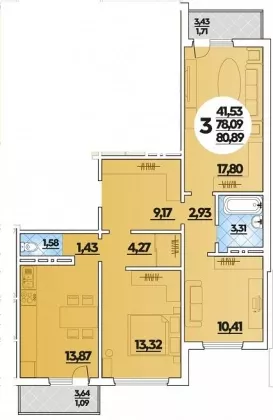 | Комнат в квартире | 3 |