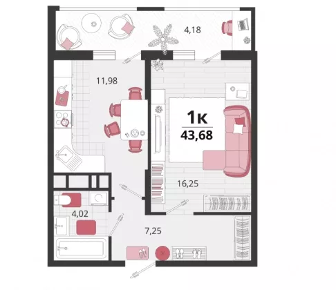 Продается однокомнатная новостройка, 44 кв.м., 9/16 эт