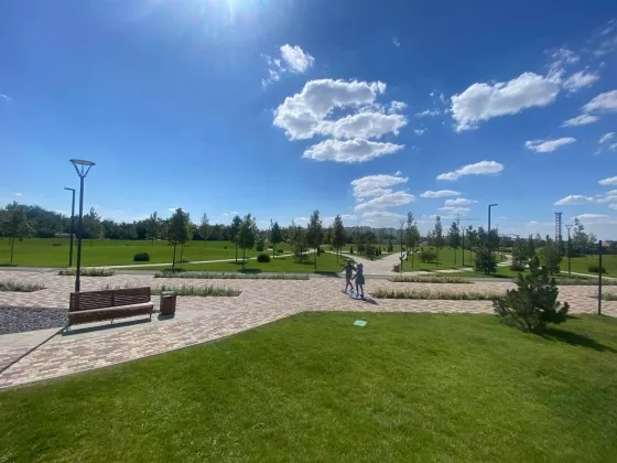 колясочная зона и помывочная для лап собачек .так же есть площадки для собак. продуманный ландшафтный красочные детские площадки и, много зелени и свежего воздуха.
